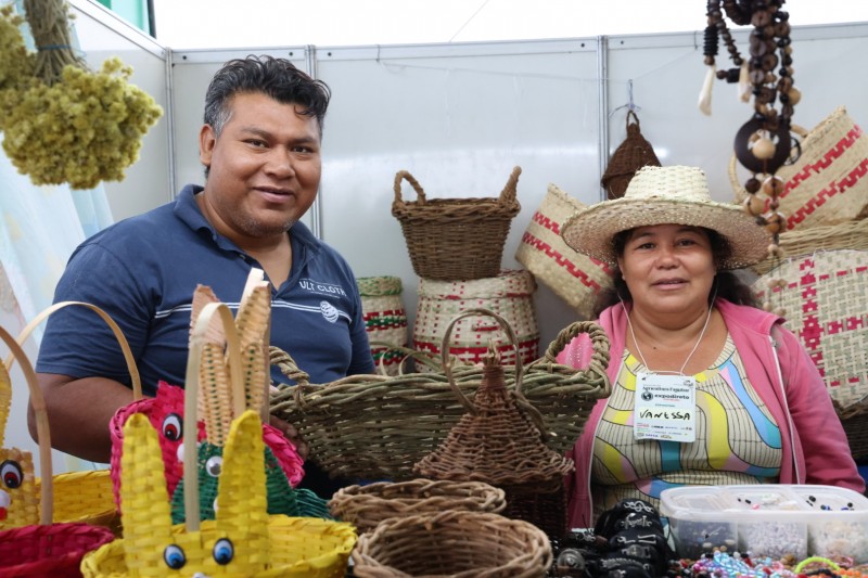 Famílias indígenas artesãs expõem seus produtos em 3 estandes no Pavilhão